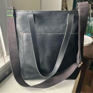 SMOOTH BLACK Portland Leather Goods Full Sized Zippered Crossbody tote FSCB