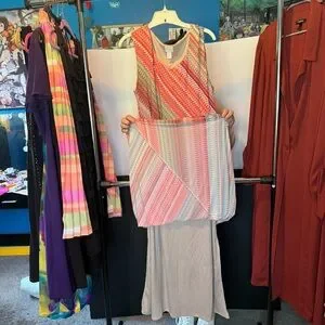 Chico's Size 3 Island Breeze Red/Orange with neutral tones Patterned tank Tamra Maxi Dress