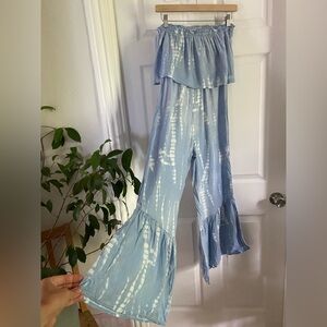 Stylish light blue tie-dye jumpsuit ladies!! Flowy and comfortable design. Ideal for casual summer wear. Sooo so cute! 😎