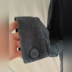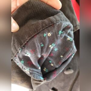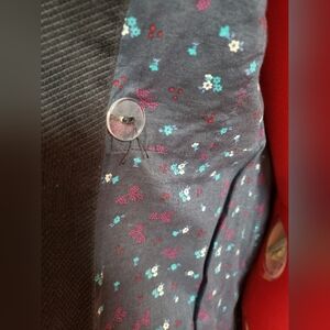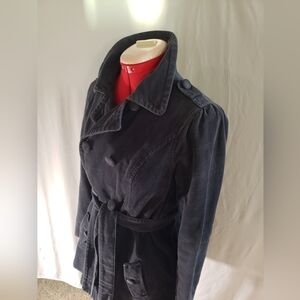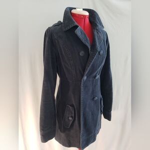 Classic style Heritage 1981 brand double-breasted ladies pea coat in fark navy blue cross-grain corduroy, size medium (fits like a medium). Stylish collar design with covered buttons and tie belt. This coat is fully lined with a darling blue soft floral cotton fabric, even the sleeves and pockets are lined. It has a true vintage look with a 90's Seattle grunge vibe. Wear it over a turtleneck and miniskirt with tights paired with black platform loafers or pair it with jeans and Doc Marten's and your favorite concert T-shirt. Its in good used condition with some signs of wear as to be expected for the age of the jacket. This is a medium weight jacket, and machine washable. From a very clean smoke free and pet free home.