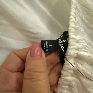 Elegant white with silver thread accent midi dress. Delicate halter necktie. Lightweight fabric. Perfect for summer.