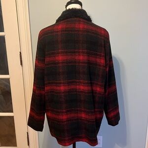 Black and Red Plaid Flannel Jacket with Fur Detail. Side Pockets. By Jack. Size Large