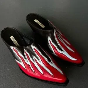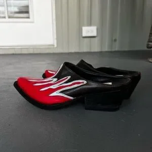 Vintage Genuine Leather Flame Mules Western Boot