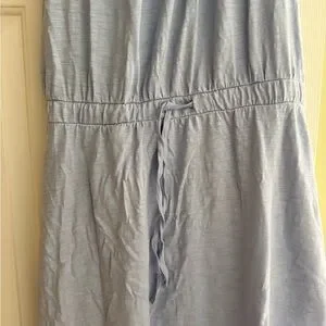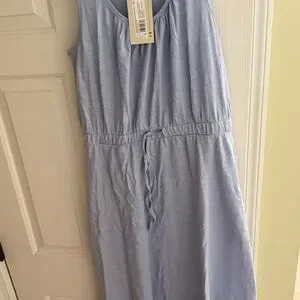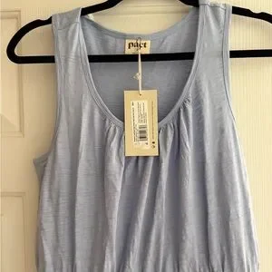 Elegant light blue maxi dress by Pact. Features a sleeveless design and a cinched waist with a tie. Perfect for casual outings.