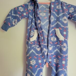 Carter's Blue and Pink Fuzzy Open Foot One Piece, 9 Months