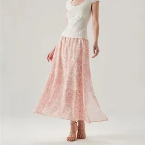 Rihoas Pink Floral Elastic Waist Flared Skirt