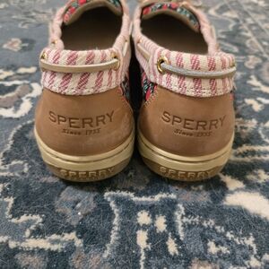 Floral and seersucker Sperry's in perfect condition! These have never been worn as you can see by the picture of the bottom of the shoe (pic 8). Perfect for any occasion, they combine style and comfort effortlessly with some added flair. Smoke free home, but not pet free. Original price unknown but estimated to be about $90. Let me know if you have any questions or make an offer! Willing to negotiate.