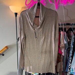 Elevate your wardrobe with this elegant cowl neck sweater. The tan color offers a versatile and chic look, perfect for any occasion.