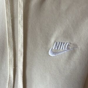 Classic Nike hoodie in creamy white. Features a comfortable fit and iconic logo. Ideal for everyday wear.