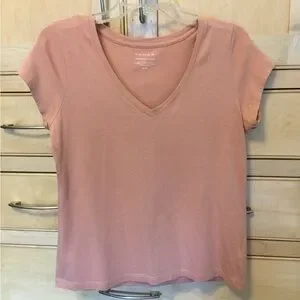 Tahari Essentials T-Shirt medium. Peach, coral,orange, short sleeve, V-neck.