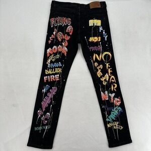 Waimea Men's Graffiti Print Artsy Colorful Black Denim Jeans Size 34 Skinny Fit