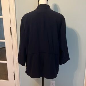 Navy Blue Open Jacket. With Gold Buttons and Ruffle Design. By CATO. Size 18/20 W.