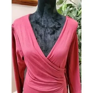 People Tree Women's Red Polyester V-Neck Long Sleeve Knee Length Dress Size 10