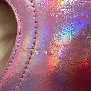 Chic shoulder bag with a shimmering iridescent finish. Elevate your style effortlessly.has a cute little heart shaped look on the bag, brand new still with tags and strapped up .. one little scratch in front manufacture issue otherwise never used paid $40 since scaratch $20