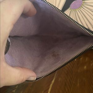 Purple suede interior, small stain inside the smaller bag could probably be easily cleaned. Smoke free, dog friendly home. Some minor scuffing pictured.