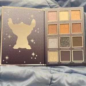 Disney Stitch themed eyeshadow palette with a playful design. Perfect for makeup enthusiasts.