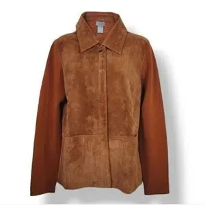Sigrid Olsen Suede Leather and Silk Blend Knit Jacket in Pumpkin Size Medium