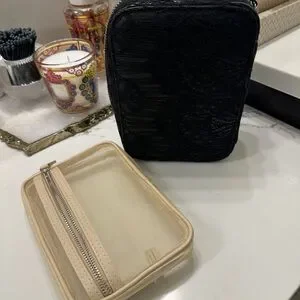 #TrishMcEvoy #MakeupBag #LuxuryBeauty #CosmeticCase #BlackLace #Organizer #TravelBeauty #MakeupStorage #PoshFinds #MakeupLover