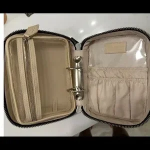 • Removable Insert: Neutral beige interior with a zip mesh pouch and elastic brush holders. Great for organizing cosmetics, skincare, or travel essentials.