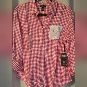 U.S. Polo Assn. Womens Red Button Down Shirt