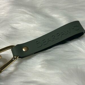 Like new. Chic olive shoulder bag by BearPaw. Features a metallic logo plate. Signs of use shown in pictures.