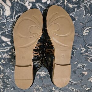 Black strappy gladiator sandals in perfect condition! These have never been worn and still have the original paper stuffing to help them keep their shape. Smoke free home, but not pet free. Original price unknown but estimated to be about $60. Let me know if you have any questions or make an offer! Willing to negotiate.