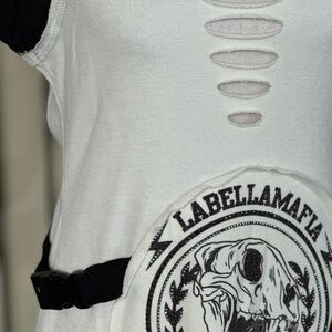 Stand out in the mini dress featuring a striking black and white graphic design. Perfect for making a statement.