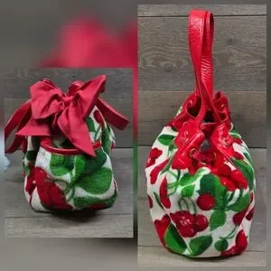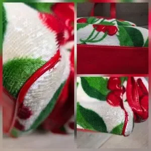 🍒Rare hard to find Authentic JUICY COUTURE large Plush Terry cloth velour cherries, cherry print weekender bag daydreamer, purse, satchel, tote! Even perfect as a beach bag or baby bag.