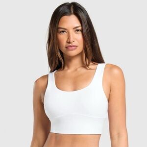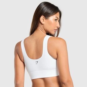 This is a Gymshark Longline Sports Bra in size medium. It is Medium Support and contains padding.