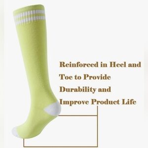 Ramp up your style with these vibrant lime green and white socks. Perfect for your child to wear and stand out during a sporting event so you can easily spot him / her from a distance and distinctly from all the other kids on the team. Also, could be worn for everyday use.