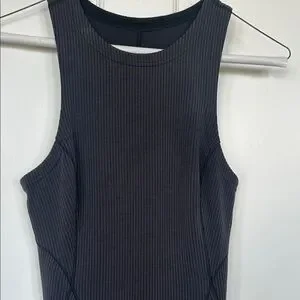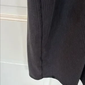 Runs a little small, pull on. Color is more a gray-blue than black, but Lulu calls it black. (Photos don’t show the color so well, either!)
