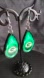 Green Bay Packers teardrop earrings. Vibrant green with black accents. Handcrafted design.