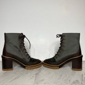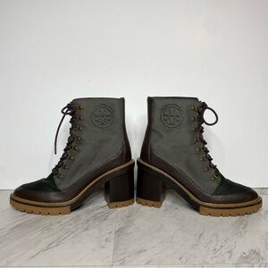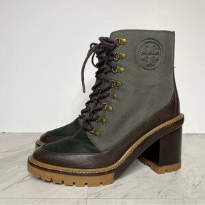 Tory Burch Miller Lug Sole Heeled Lace Up Boots 11M