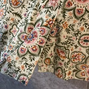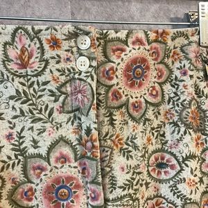 Talbots Cotton Vintage Tan Floral Knee Length Skirt with Slit Corduroy Blush