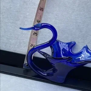 This stunning cobalt glass swan figurine brings a touch of elegance to your home. Its vibrant blue hue and graceful form make it a perfect centerpiece for any room.