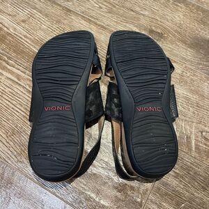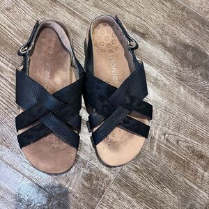Vionic Eira Sandals Women's Black 8.5 Strappy Woven Pebble Leather Comfortable