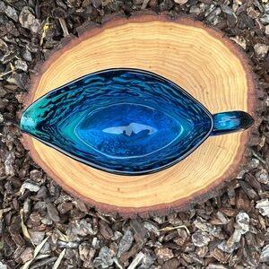 Vintage from 1967, this gorgeous Blenko #6730 blown glass pitcher was produced under the tutelage of Joel Myers who served as the Blenko design director from 1963 to 1970. Produced by Blenko Glass for only 1 year, 1967. Joel Myers is known for simple yet powerful glass vessels that combine color and form in distinctive ways. This turquoise Mid-Century pitcher is in excellent preloved vintage condition with no cracks, chips, breaks or repairs. Crafted in the USA, this pitcher is approximately 8 5/8 inches long, 3 3/4 inches wide and 5 3/8 inches tall, and weighs 2# 6.2 ounces. This stunning pitcher CANNOT be part of a bundle.