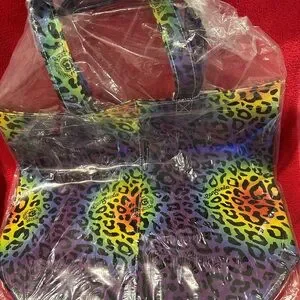 Bold tote with a striking leopard pattern. Features a mix of vibrant colors.