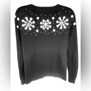Chic black cardigan with white snowflake pattern. Perfect for winter wear.