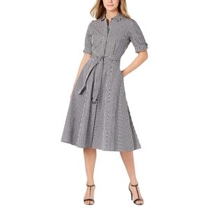 Calvin Klein Gingham Shirtdress Size 2 Black White Check Button Down Midi Dress Belted