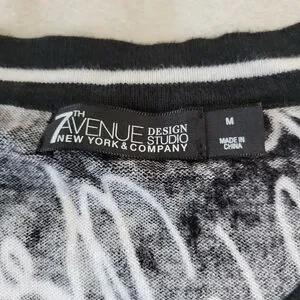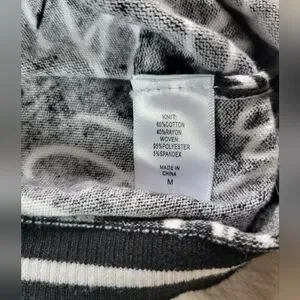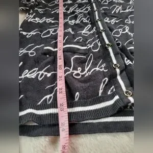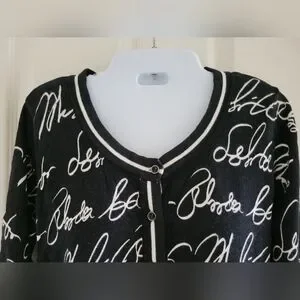 7th Avenue | Cute Black/White Script 3/4 Sleeve Knit Cardigan (SIZE M)
