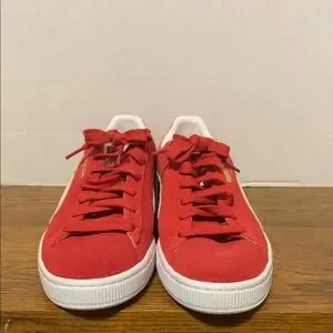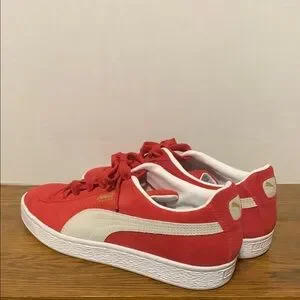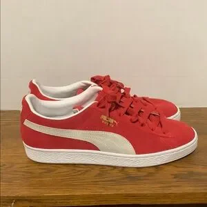 Puma Red and White Suede Sneakers
