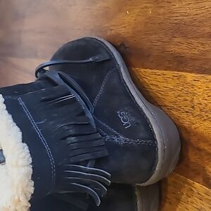 UGG Gaviota Black Suede Boots, women's size 9, multi wrap/fringe.