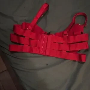 Fiery red bra with bold strappy design. Striking and fashionable. Ideal for making a statement.