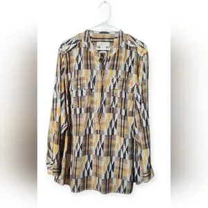 Michael Kors LS 1/2 Button Up Print Blouse EUC