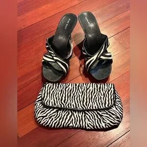 NINE WEST NIGHT OUT SET ZEBRA PRINT MULES AND SATIN CLUTCH SIZE 11 (FITS 10)