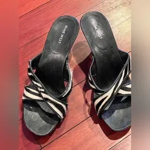 Black and white zebra print sandals, I’m a 10 these are an 11 and they fit perfectly. Excellent condition.If you are an 11 they will be tight. See photos and ask questions.
