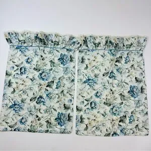Vintage Blue Floral Cotton Lace Ruffle Trim 2 Standard Pillowcases & Flat Sheet. Gently used in great vintage condition. Size Double Bed.