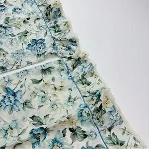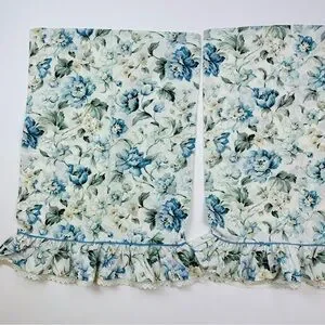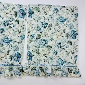 Vintage Blue Floral Cotton Lace Ruffle Trim 2 Standard Pillowcases & Flat Sheet