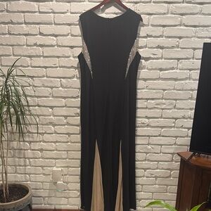 Xscape Black Evening Gown with Trumpet Skirt and Silver Beaded Accents